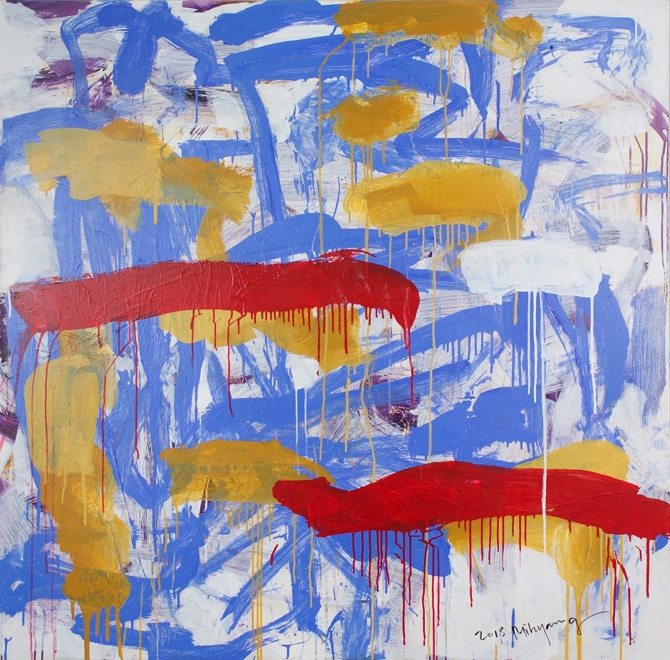 나는 움직이고 캔버스는 그것을 고스란히 기록한다. 나는 캔버스에 떨어진 나의 몸짓을 부인하지도, 강조하지도 않는다. 그냥 그럴 뿐이다. 그러나 가끔 내 행위, 혹은 내 단순한 몸짓의 기록인 캔버스는 나의 행위보다 우선하는 그들끼리의 질서를 보여준다. 이럴 때 나는 움찔하기도 하고 숙연해지기도 한다. 내가 그림을 그리는 것이 아니라 그림이 그들의 말을 내 행위를 통해 드러낼 뿐이라는, 그래서 나는 마치 신탁을 전하는 사제와 같이 자신의 의지는 조용히 내려놓는다.